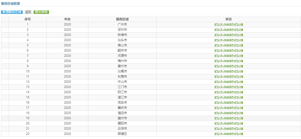 廣東范圍服務(wù)區(qū)域皆已通過審核。